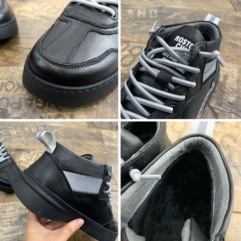 Plus velvet cowhide board shoes Korean version of casual all-match small white shoes men's shoes a pedal 2019 winter new trendy warm shoes