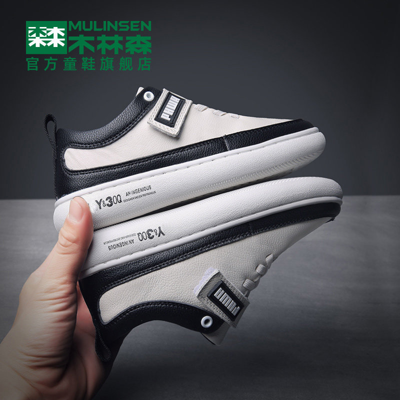 Mulinsen children's shoes boys' shoes 2022 new winter leather waterproof children's board shoes middle and big children's students casual
