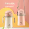 Korean cup Bear learning drink Thermos cup Baby bag Straw Small portable dual-use male and female baby kindergarten fall-proof adorable