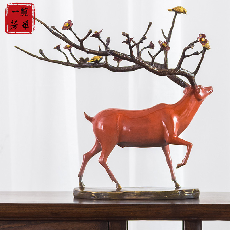 LO GULEYA pure copper deer lucky ornaments sika deer living room porch wine home living room decoration opening gift