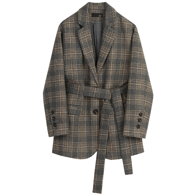 VEGA CHANG fur blazer women's 2021 new loose fall/winter ties with belt tweed coat
