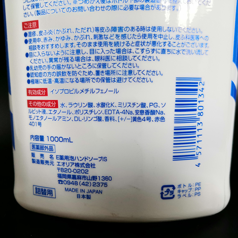 Japan Imports Foam Hand Sanitizer 1000ml Large Capacity Supplement replacement Sterilized Moisturizing Foam Type