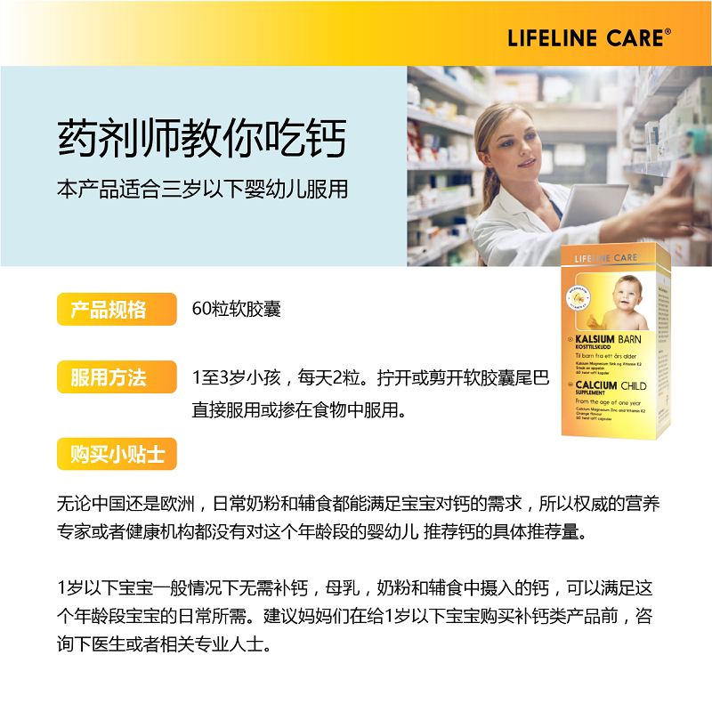 Norwegian Lifeline Care baby newborn fish oil milk calcium liquid calcium magnesium supplement zinc VD easy to absorb 60 capsules