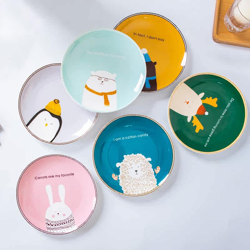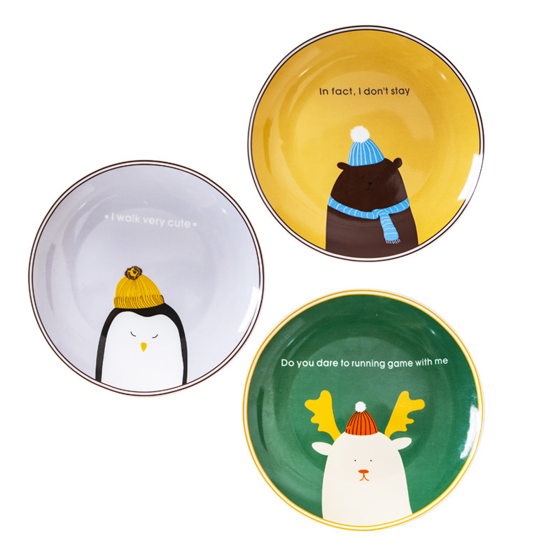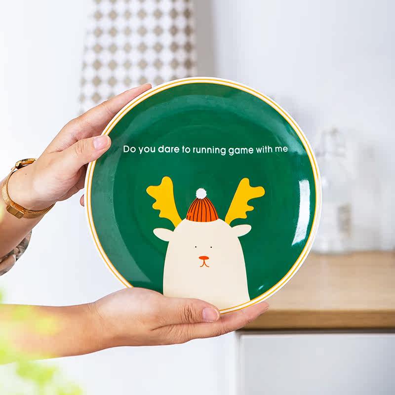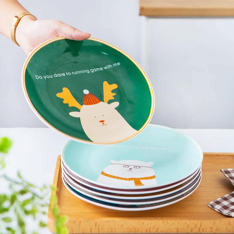 The Seal is happy to be creative Home Ceramics Nets Red Plates Cute Cartoon Animals Christmas Plates Shallow Pan Flat Dish Cutlery