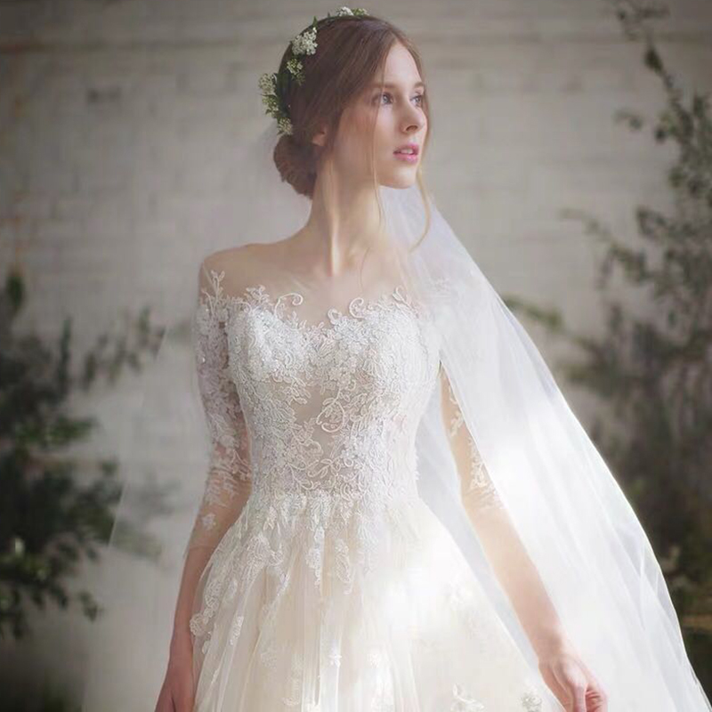 Light wedding dress 2021 summer new bride French Qi Di show thin temperament slim tail word shoulder main yarn