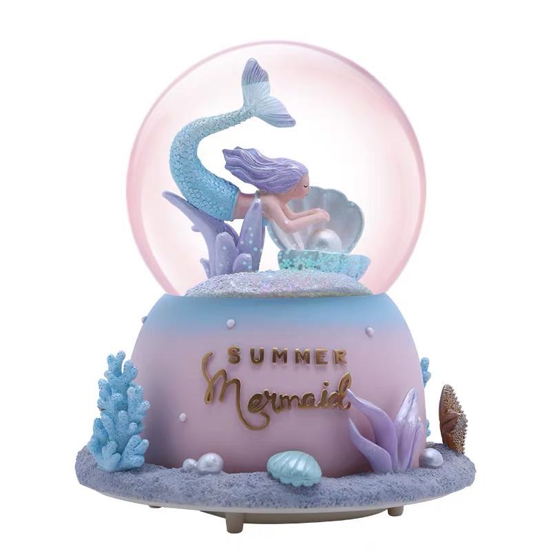 Cartoon Mermaid Crystal Ball Transparent Fantasy Rotating Music Box Ball Girl Princess Gift Large Snowflake Lamp