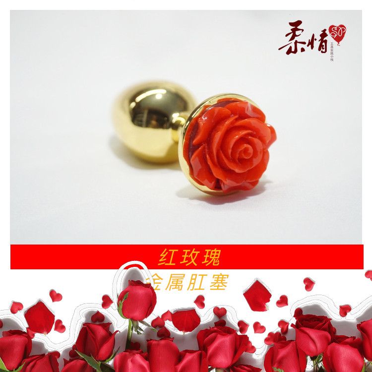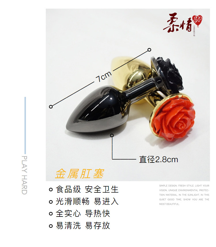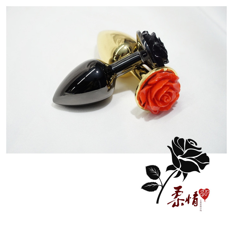 Black rose red rose metal anal plug outside new hand small men and women with rear vestibular stuffed adult bdsm erotics supplies