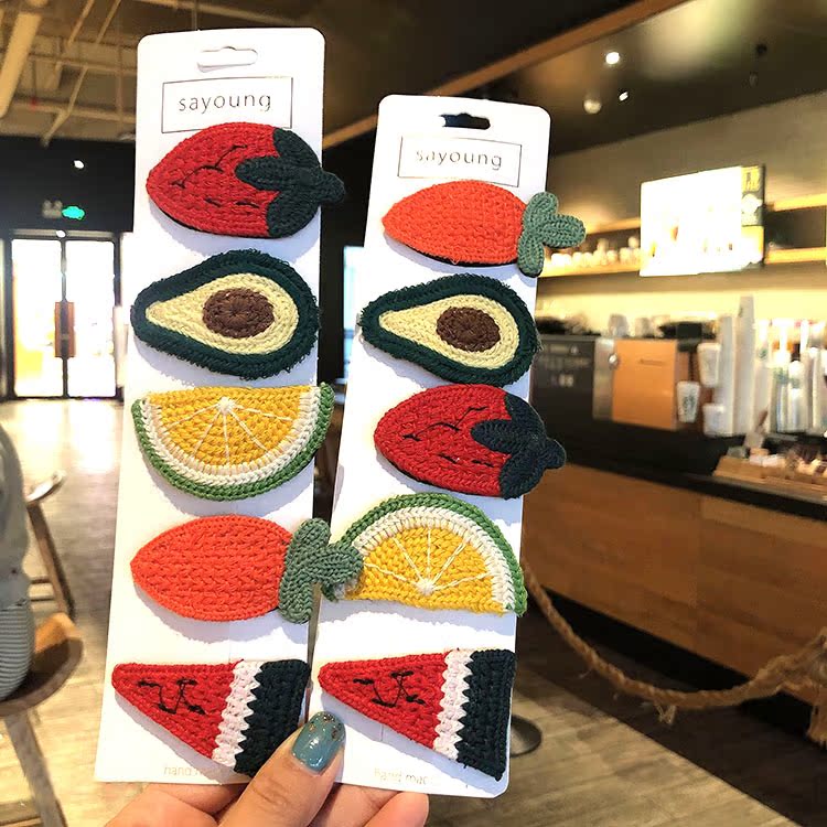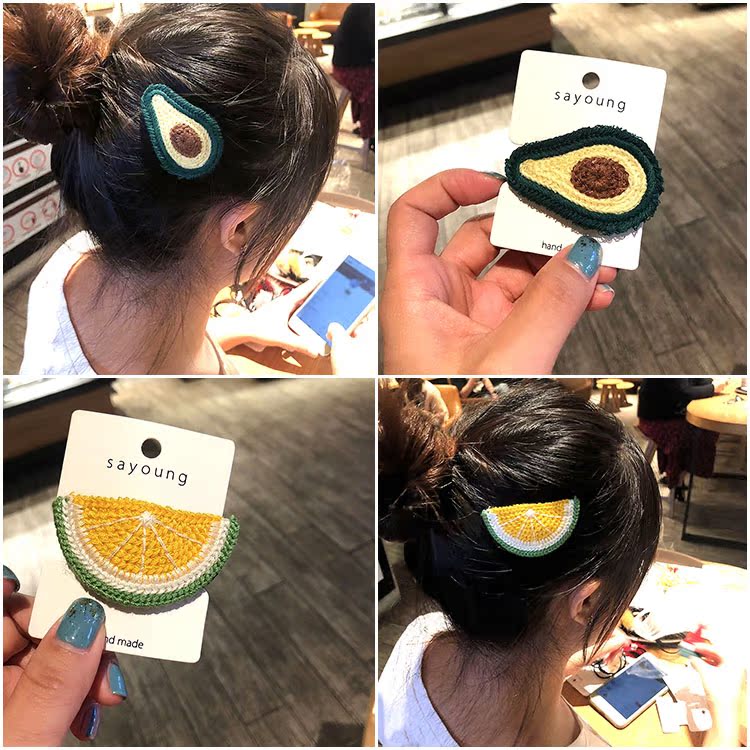 Japan and South Korea net red ins large wool BB clip watermelon fruit carrot edge clip Avocado hair clip Strawberry hair accessory