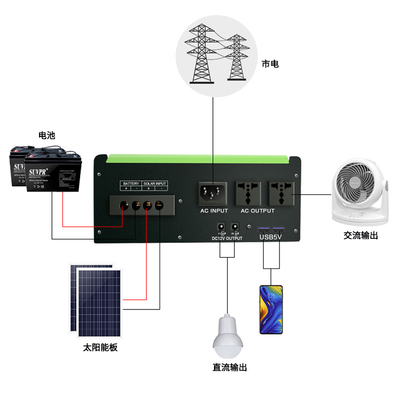 Solar power generation system 1500VA small home whole set of photovoltaic off-grid inverse control integrated voltage supply 220V