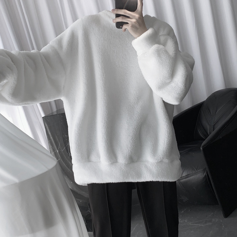 Short sentence Mr. Lamb sweater men's autumn/winter style round collar loose plush thick coat tide chic couple top