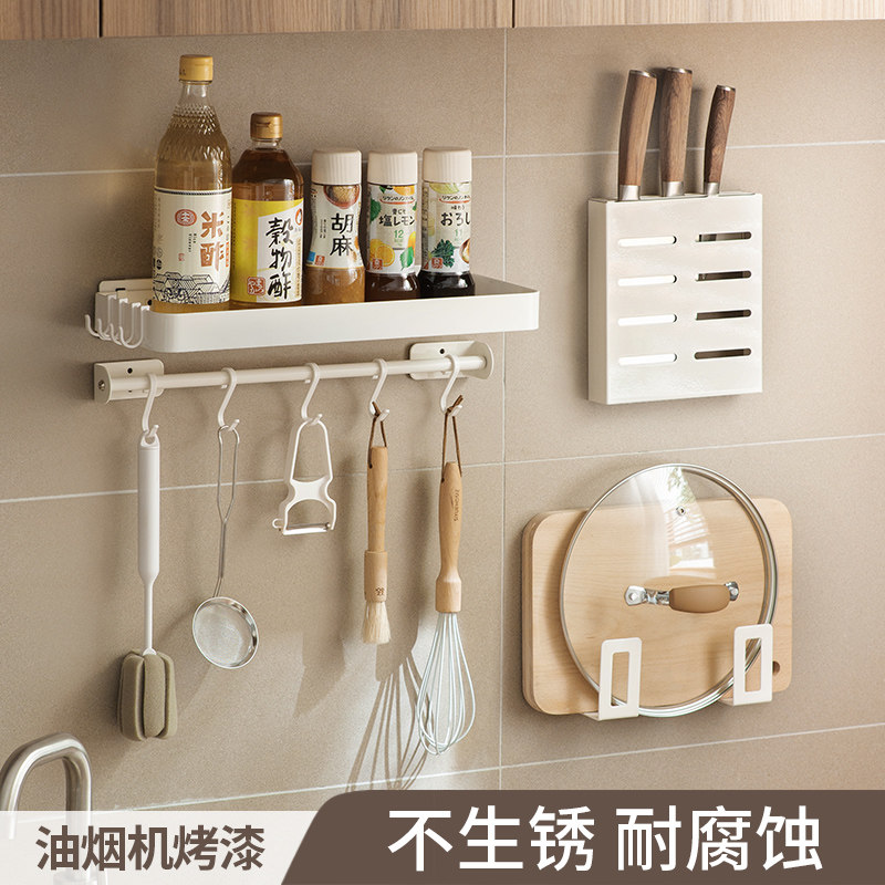Lazy corner kitchen shelf Wall-mounted non-perforated seasoning tank rack Cutting board rack Supplies household Daquan storage shelf Knife rack