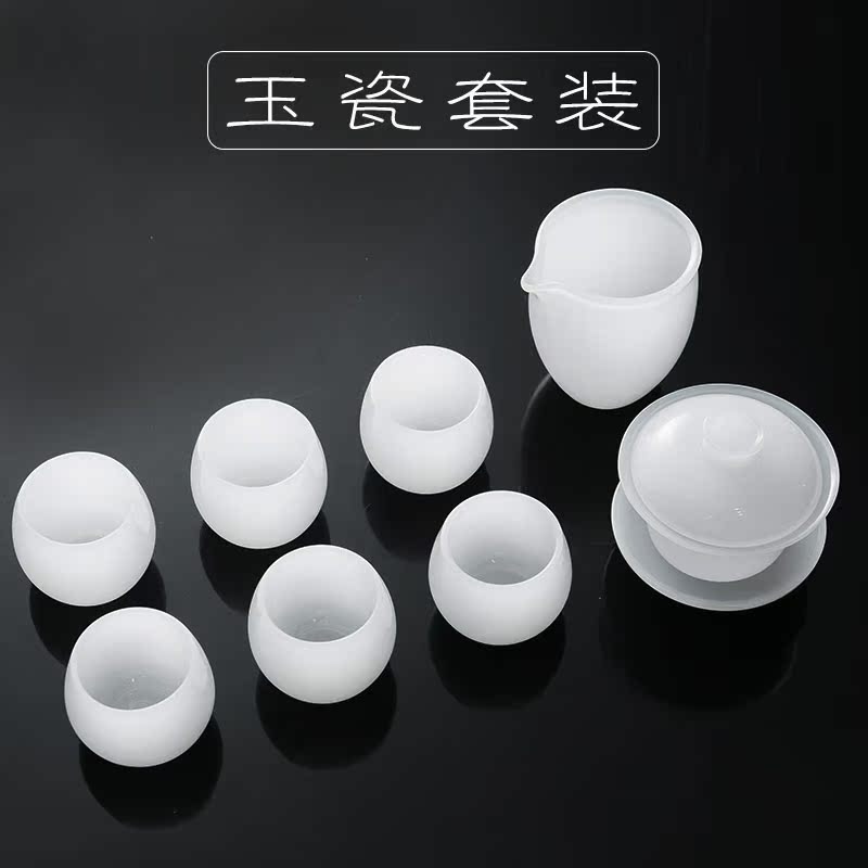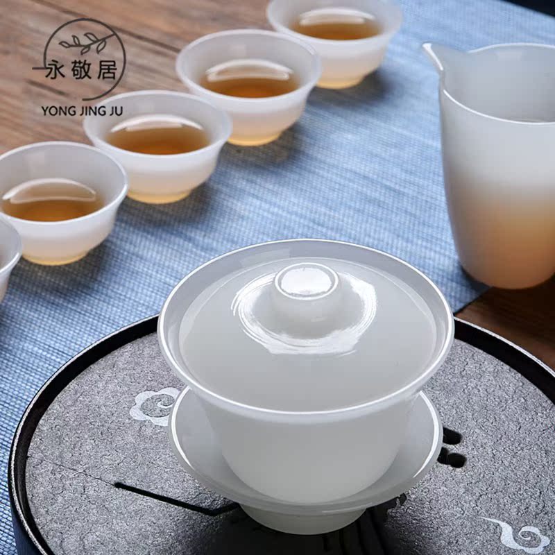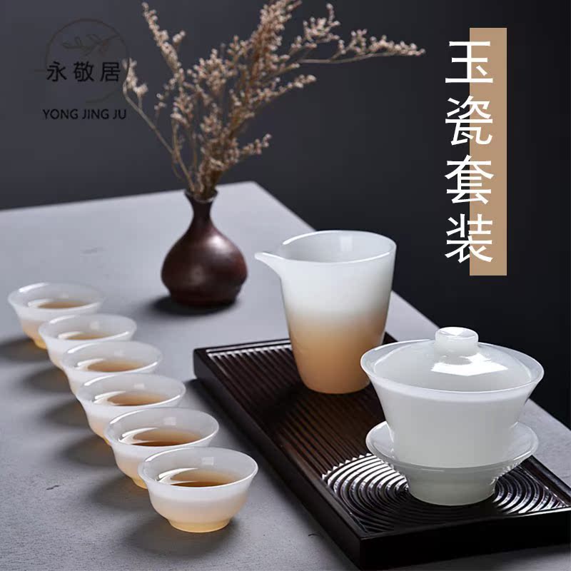 Yongjingju Kung Fu Tea Set Household Simple Jade Porcelain Covered Bowl Teacup Fair Cup Large White Porcelain Complete Set