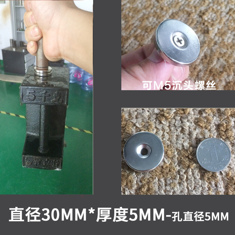 30×5 hole 5mm NdFeB strong magnetic round with hole super strong magnet magnet steel magnet countersunk head hole pendant