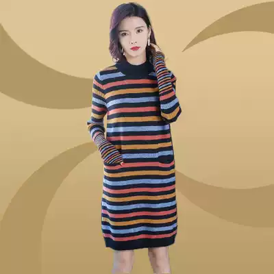 Fat mm Korean version of long loose large size knitted base shirt Women in autumn and winter with half high collar foreign pie fat mm top