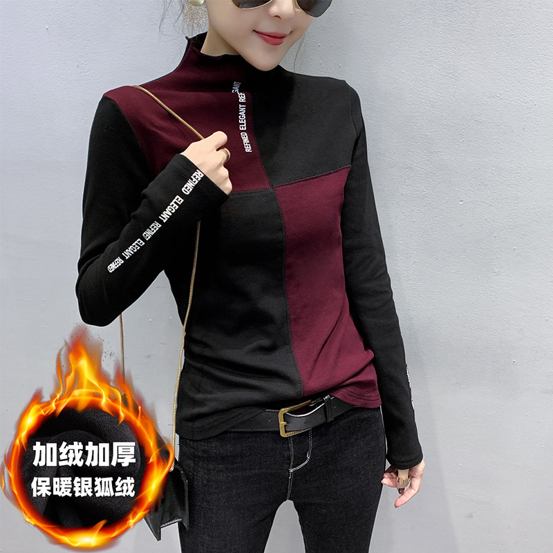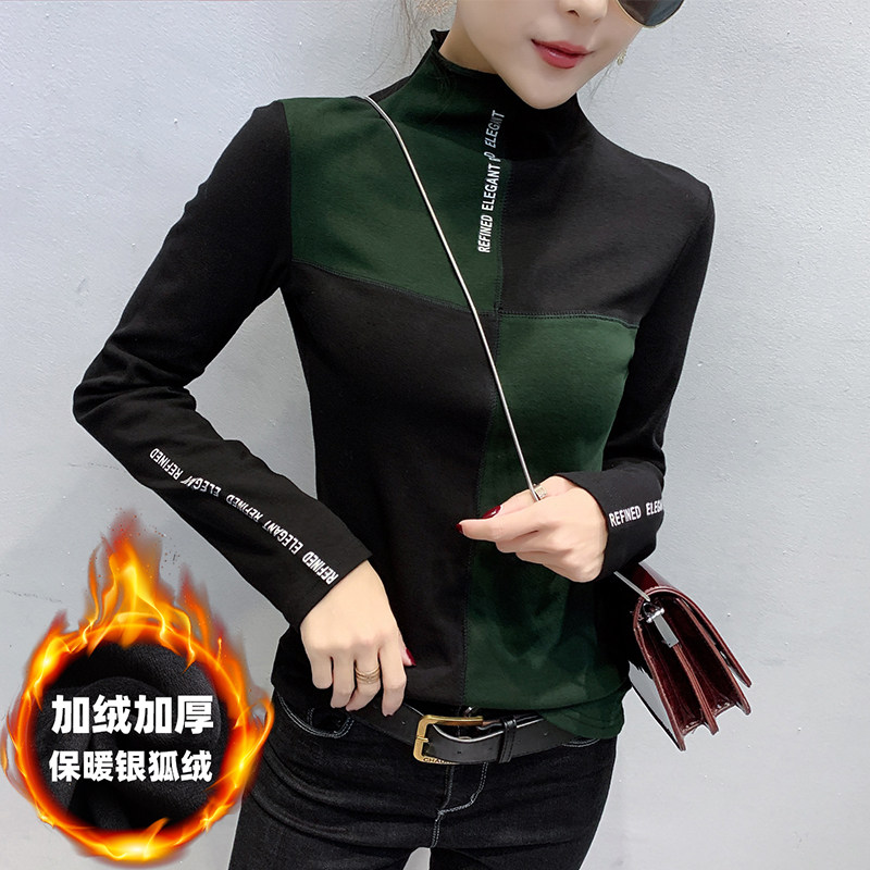 European Standing Autumn Winter New Semi-High Neckline Fur Long Sleeve T-Shirt Woman Sashimi With Warm And Velvety Thickening Thickened Undershirt