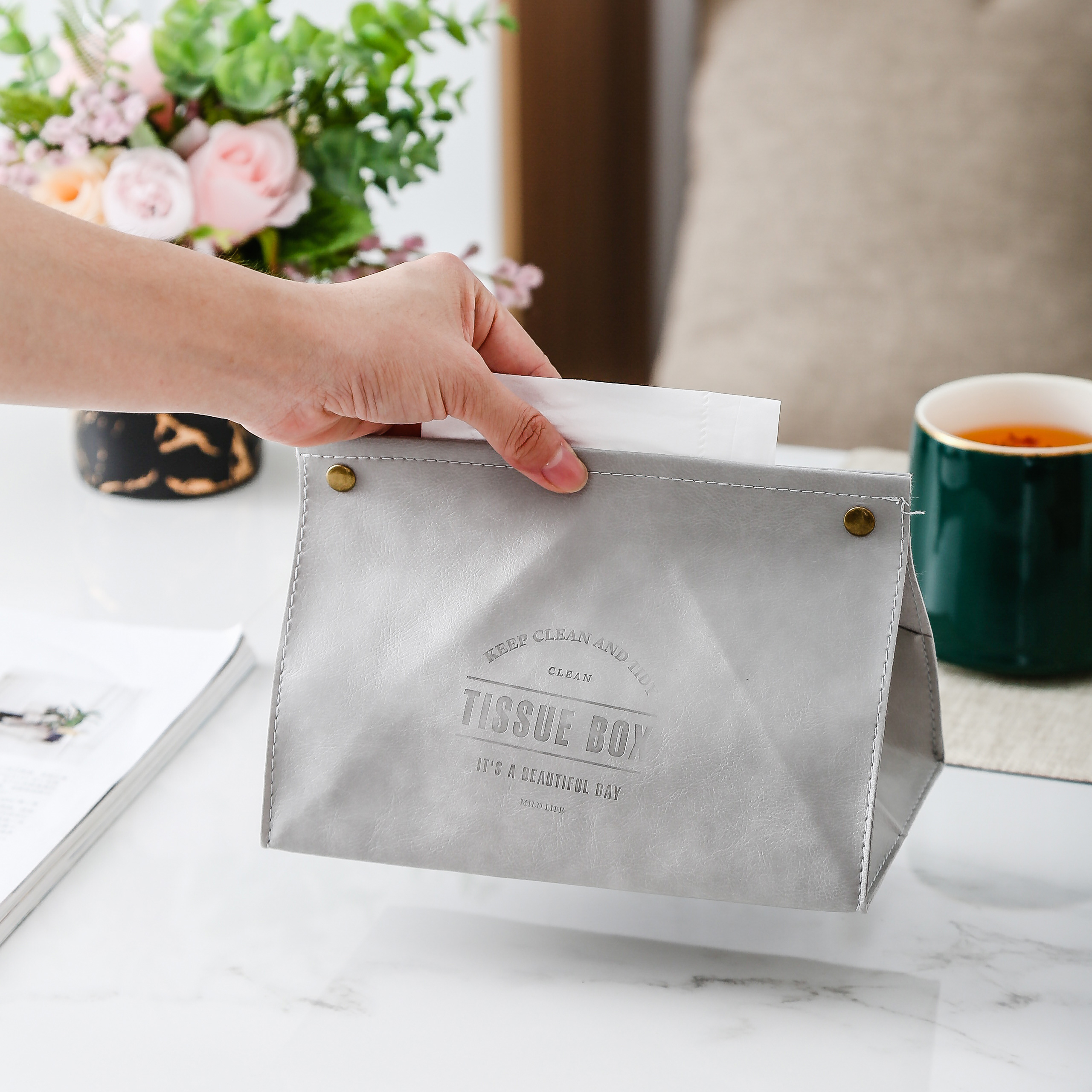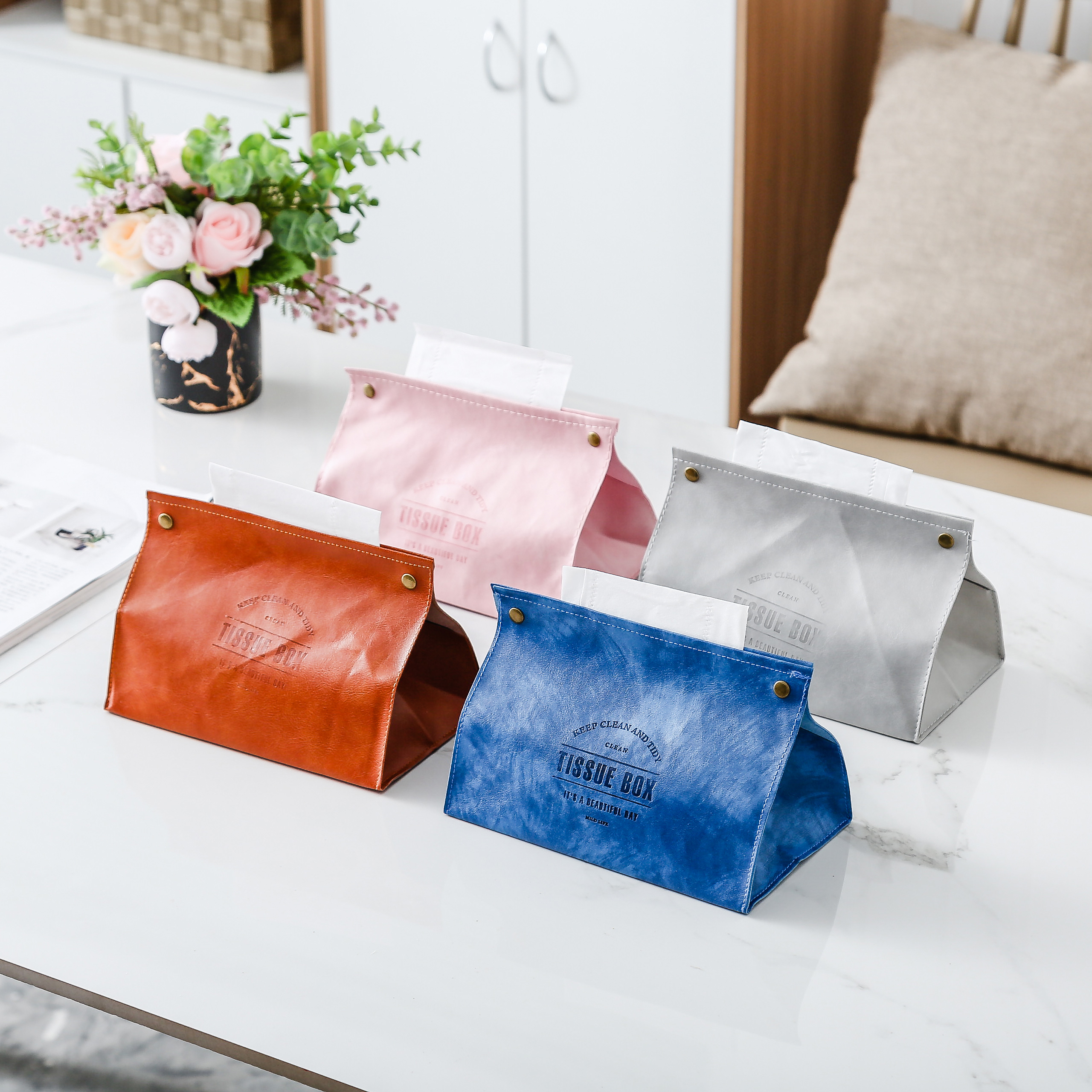 Living room tissue box ins Nordic wind multifunctional leather waterproof paper towel bag home drawer bag paper towel storage bag