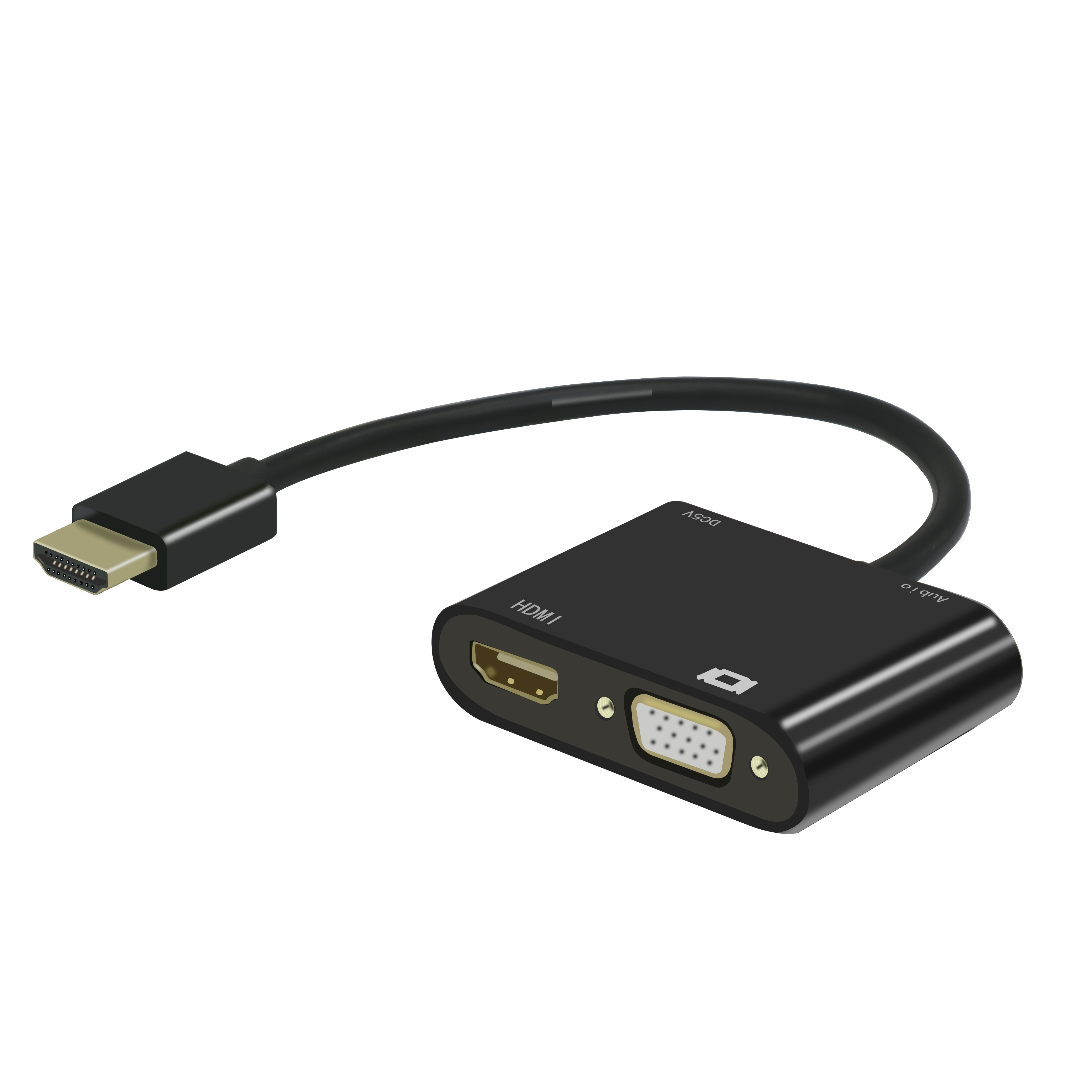 HDMI splitter one point two 1 in 2 out to HDMI VGA same screen splitter with 3 5 audio cable head