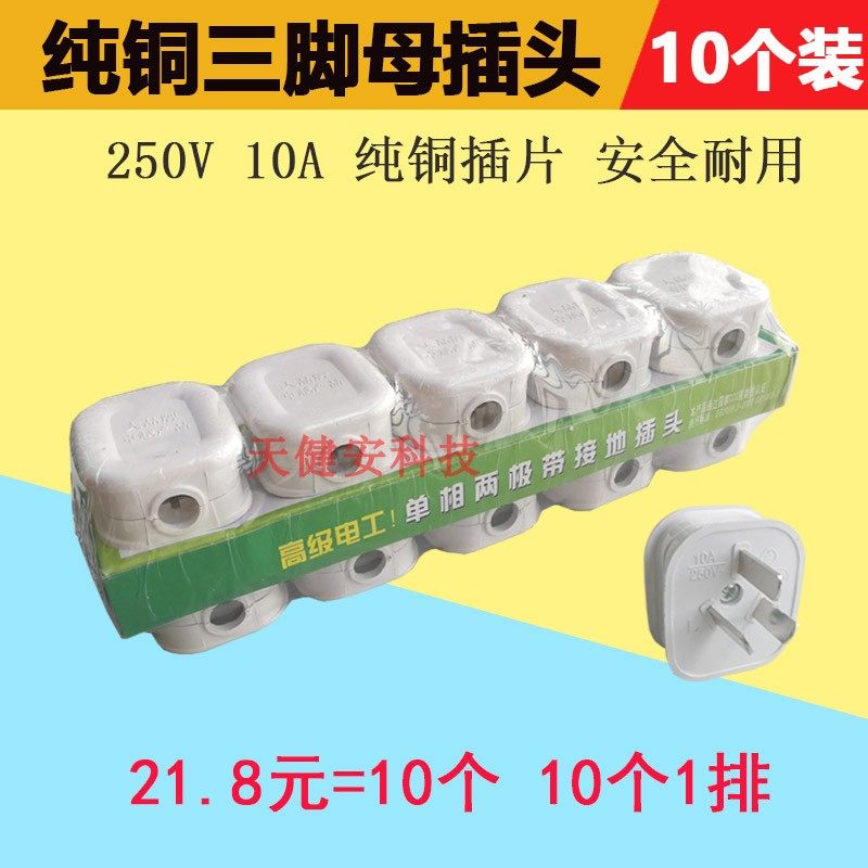 Pure copper three-pin male plug 5 pure copper three-pin male plug 10 = 1 row