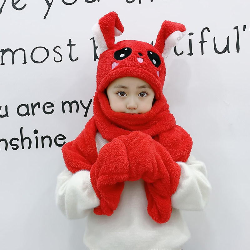 Shake sound net red rabbit ear moving hat autumn and winter rabbit ear hat scarf one cute male and female children