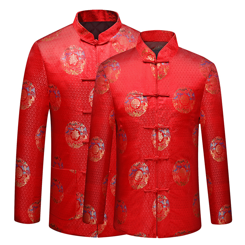 Tang suit men's middle-aged and elderly couple's jacket grandparents autumn and winter clothes 70 years old 80th birthday padded coat thickened padded jacket