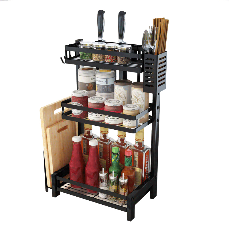 Black trapezoidal second-tier seasoning rack Black trapezoidal second-tier seasoning rack Knife rack Black trapezoidal second-tier seasoning rack Chopstick holder Black trapezoidal second-tier seasoning rack Chopping board rack Black trapezoidal second-tier seasoning