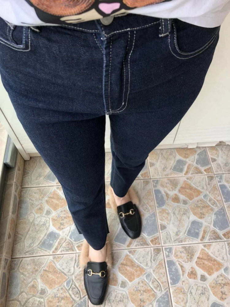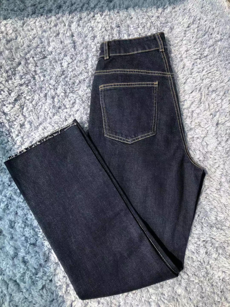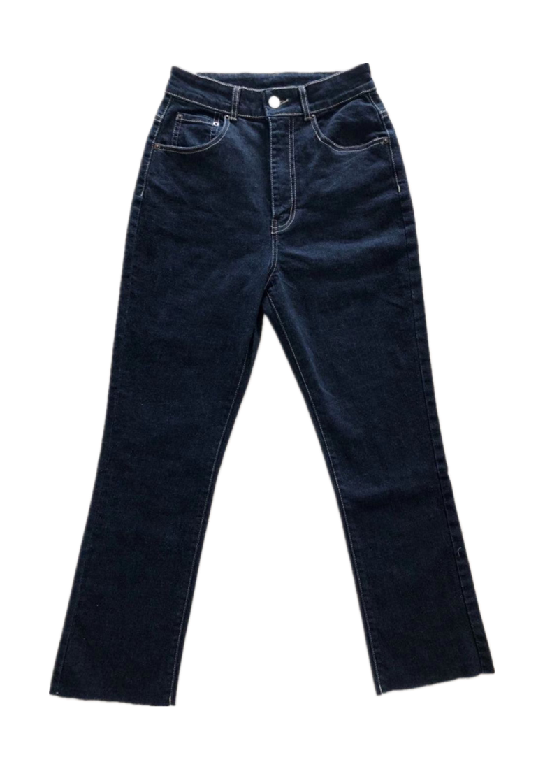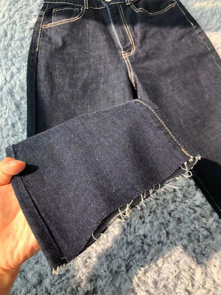 21 Autumn New Italy C's customer supply dark blue elastic high waist slim denim flared pants female raw edge slightly flared nine