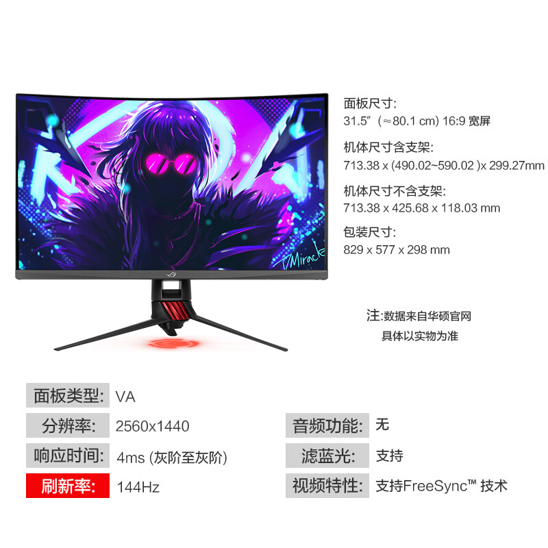 Asus ASUS XG32VQR 31 5-inch 2K curved display 144HZ gaming ROG curved screen