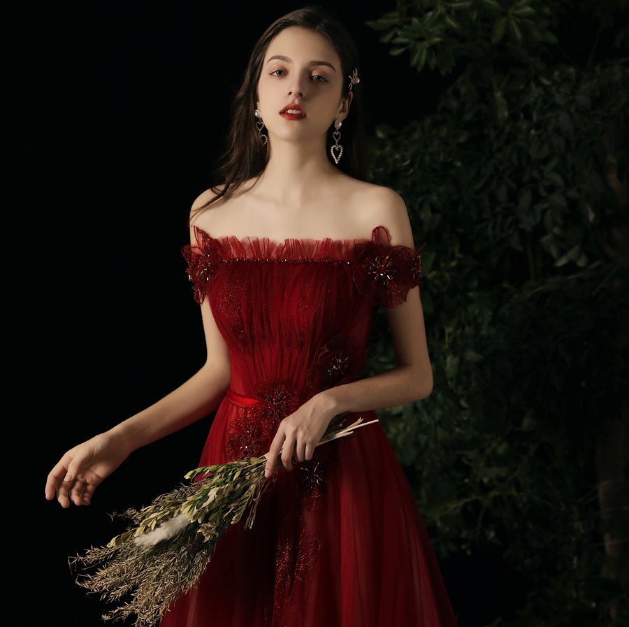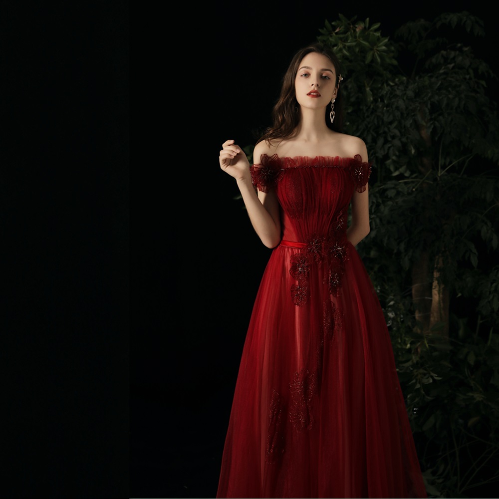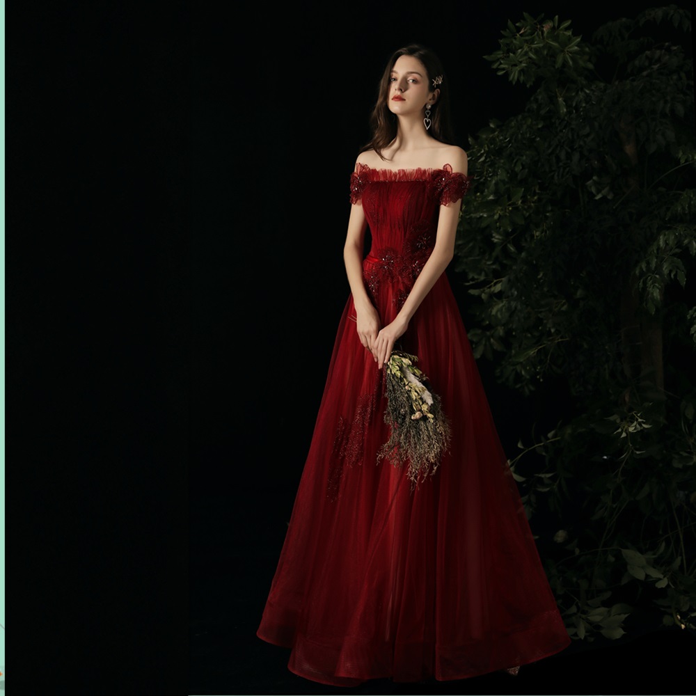 Toast to the Bride Wine Red long version of wedding Shoulder Back Door Gown Dress Banquets 2020 Autumn Winter New