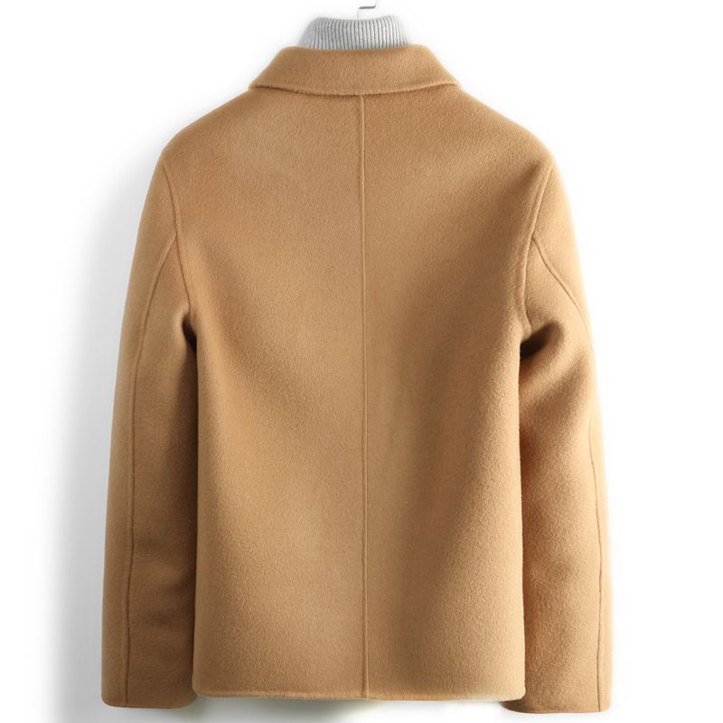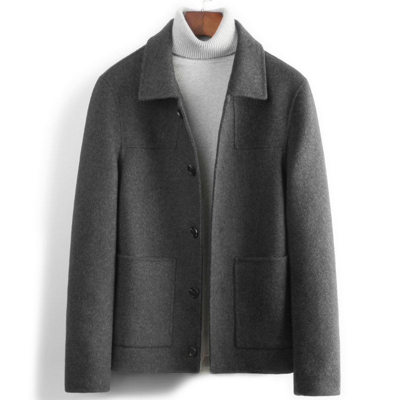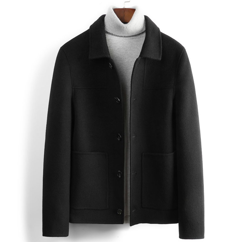 Autumn pure handmade double-sided men's 100% wool coat short cashmere-free jacket wool coat Korean version of the new
