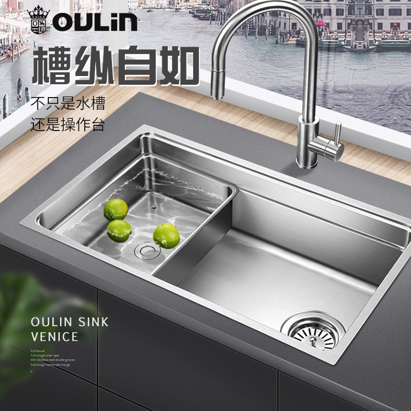 Olin flagship store official website sink single sink large single sink 304 stainless steel handmade kitchen sink OLWGV9102