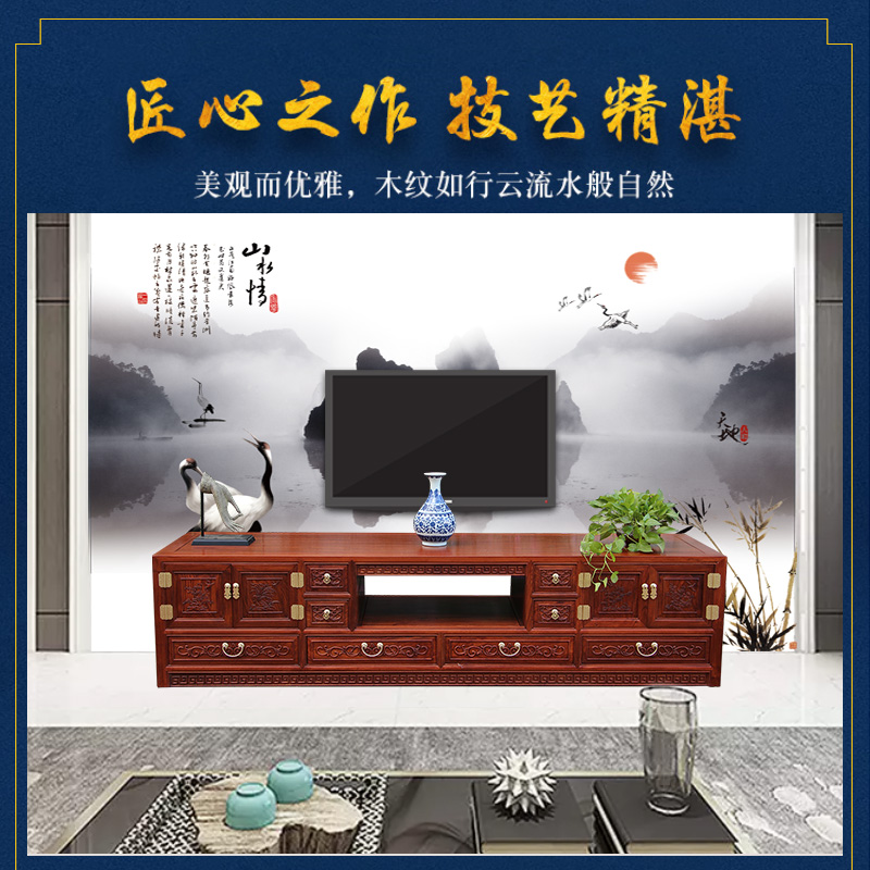 Foshan TV Cabinet New Chinese Living Room Red Wood Custom Containing Cabinet Ground Cabinet Solid Wood TV Cabinet Logs Full Solid Wood
