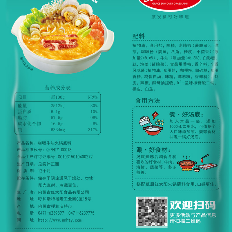 Prairie Red Sun Curry Bull Oil Hotpot Soup Bottom 180g * 2 Home Dense Alcohol High Soup Mandarin Hot Pot Soup Base Stock