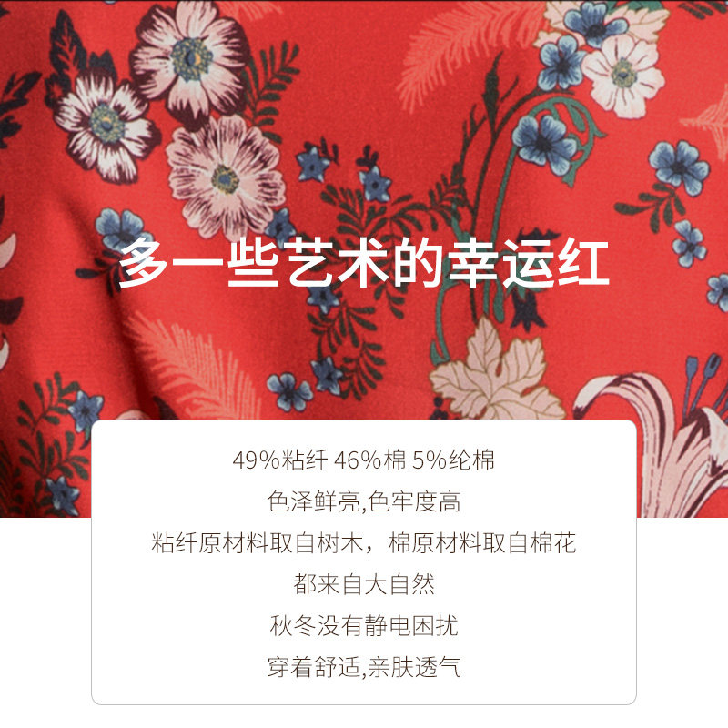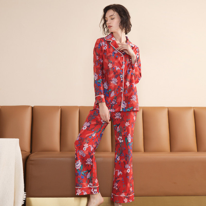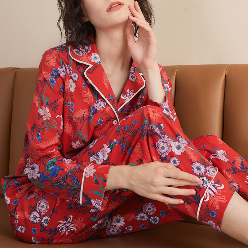Rouman pajamas women's spring and summer red printing long-sleeved cotton national tide zodiac year pajamas wedding home service suit