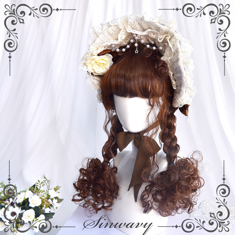 Swanjia-Multicolor Court Beige Fluffy Inside Buckle Bangs Cute Lolita Doll Short Curly Hair-)Puff)
