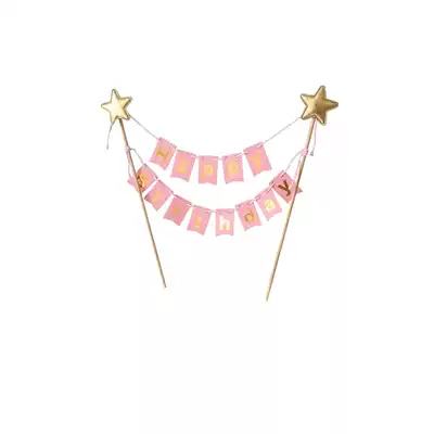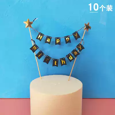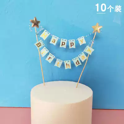 Birthday party baking creative cake decoration plug-in flag five-pointed star flashing gold HB banner pull flag plug-in