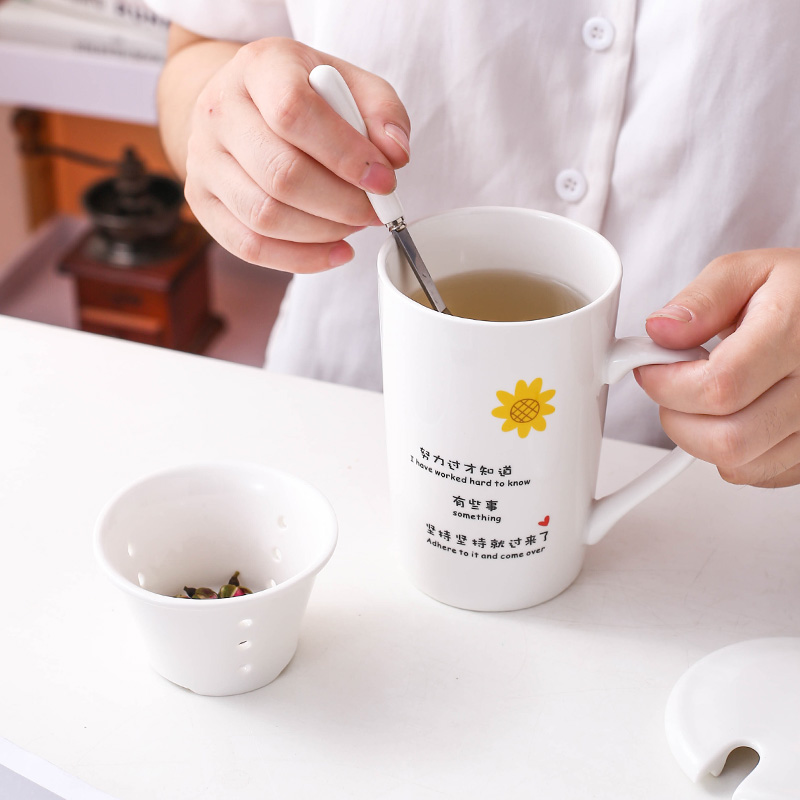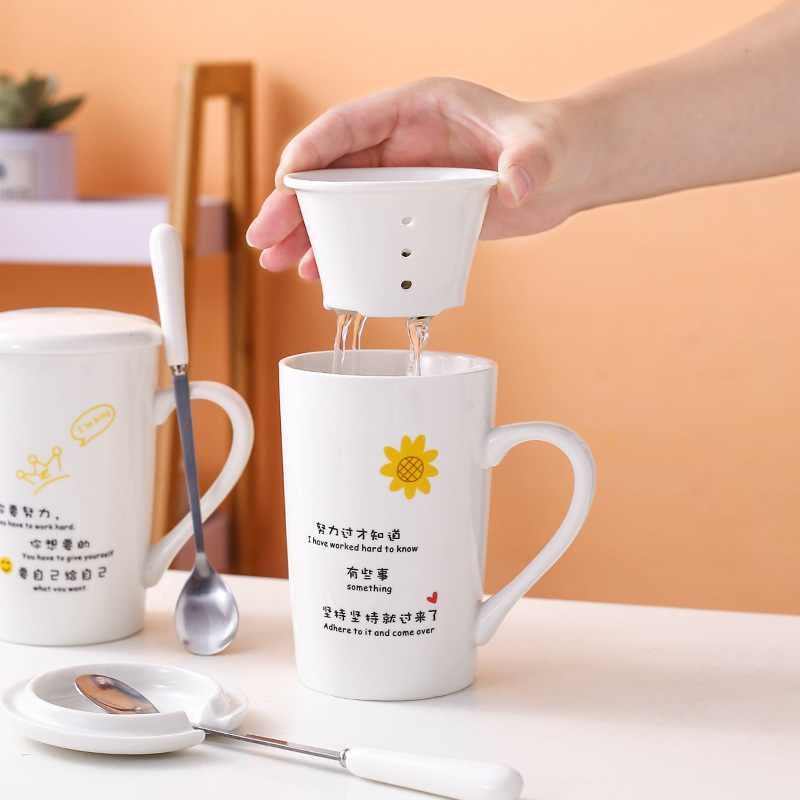 Breakfast Cup ceramic creative mug with lid spoon personality trend water Cup home simple coffee cup female teacup