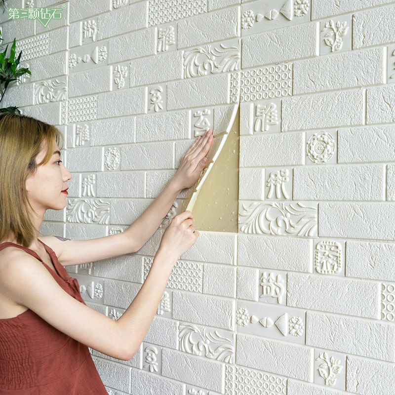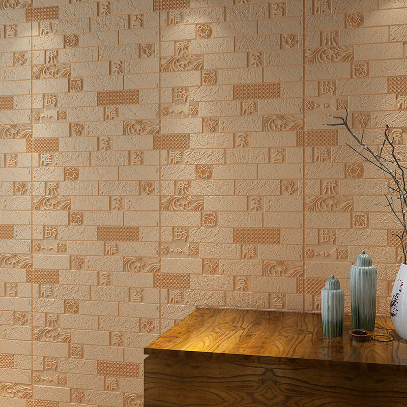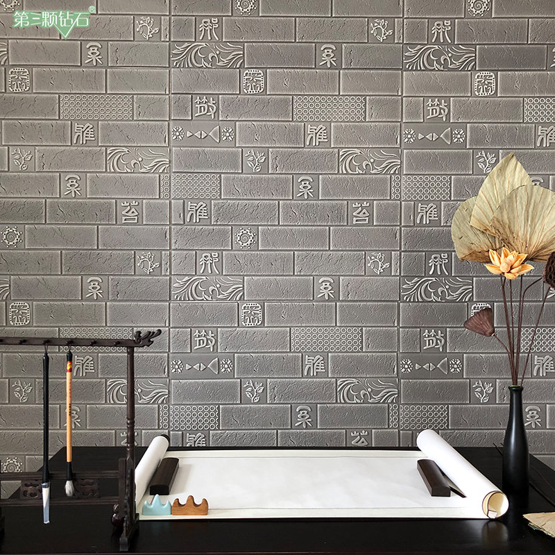 Chinese 3d stereo wall sticker culture stone brick calligraphy living room bookroom bedroom thickened background wall Self-adhesive paper A12
