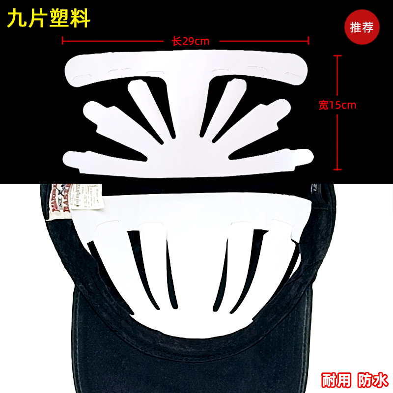 Nine plastic inner support (5) nine print inner support (5) nine cardboard inner support (5) six cardboard inner support (5) general cardboard baseball cap support (10) general breathable plastic