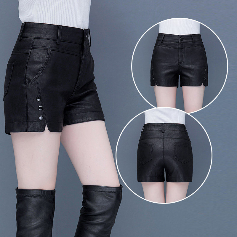 Leather shorts 2023 new spring autumn winter high waist 100 hitch a slim a character outside wearing big code pu leather pants boots winter-Taobao