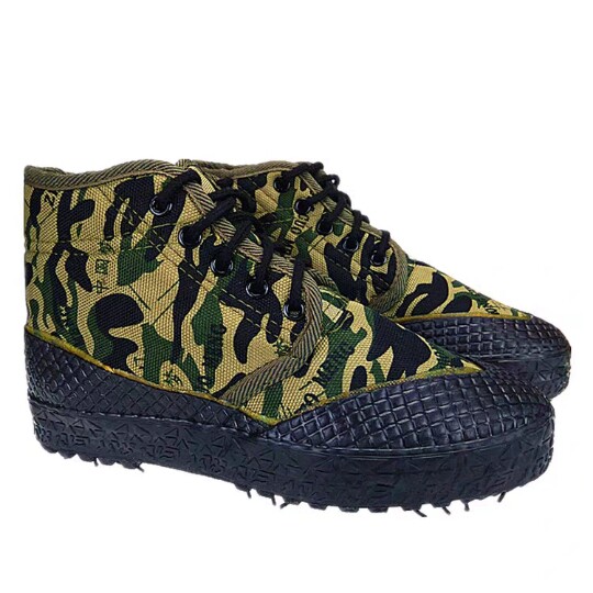 Double star camouflage artificial plush thickened warm high-top canvas shoes rubber soft bottom non-slip training shoes outdoor shoes