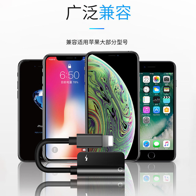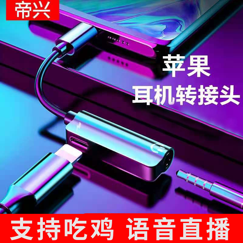 Suitable for Apple 7 headphone adapter 8plus switching line 8x extension cord 11XSMAX mobile phone live charging two-in-one converter xr eat chicken round head 3 5 audio turn light