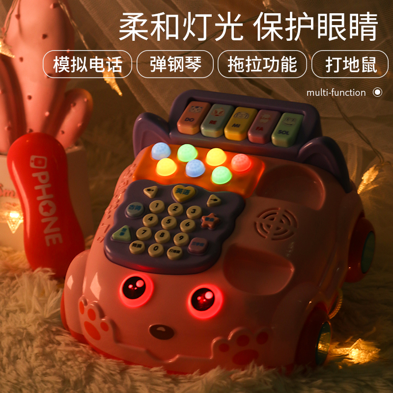 (Battery version) Gopher keyboard telephone All-in-one toy car blue (Battery version)Gopher keyboard telephone All-in-one toy car Pink (rechargeable version)