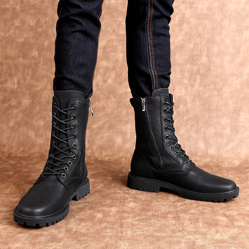 High gang Martin boots male long tube in winter plus small yard shoes 35 warm 36 black 37 real leather boots high tube shoes