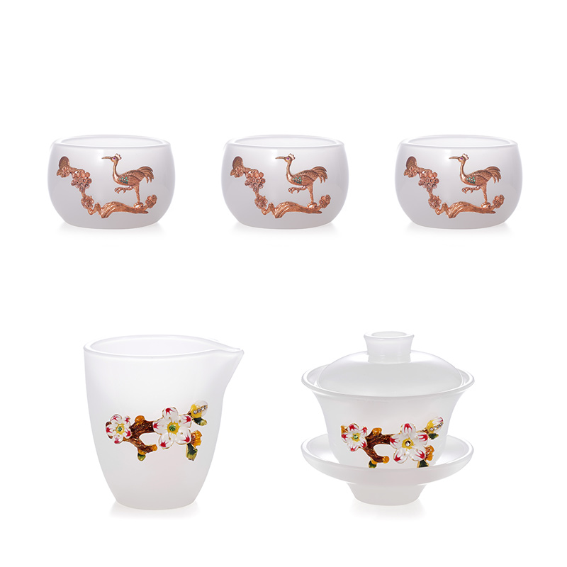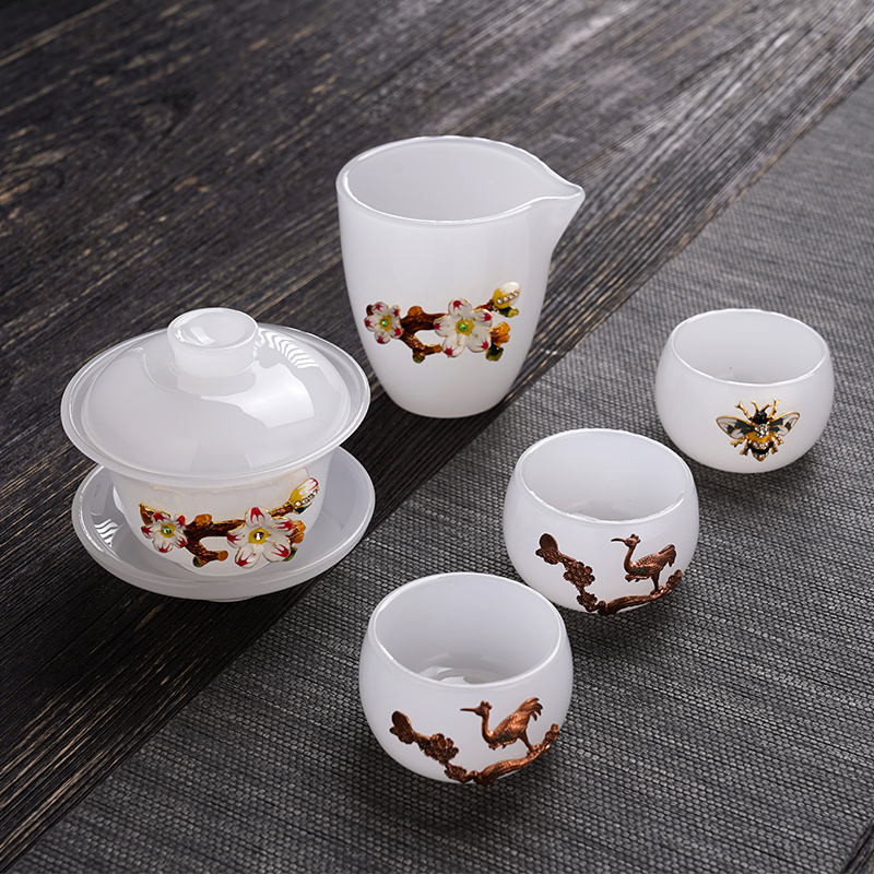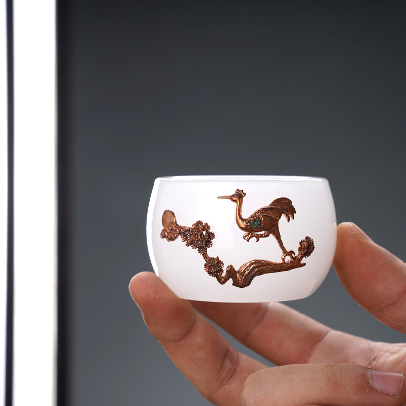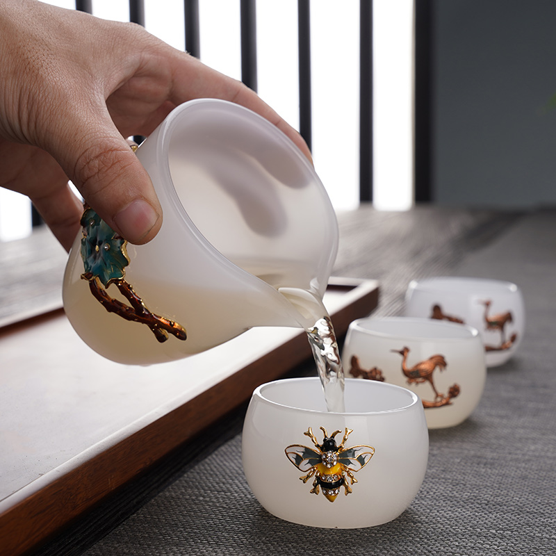 Jade Porcelain Tea Cup Four Value White Jade Mosaic-Blue Bee Tea Cup-Single White Jade Mosaic-Yellow Bee Tea Cup-Single White Jade Mosaic-Jinfeng Chaoming Tea Cup-Single White Jade Mosaic