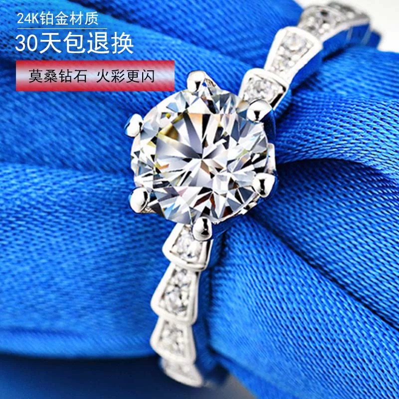 24K platinum inlaid imported moissanite wedding ring PT950 platinum jewelry does not fade wedding proposal birthday gift
