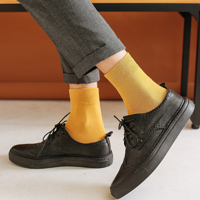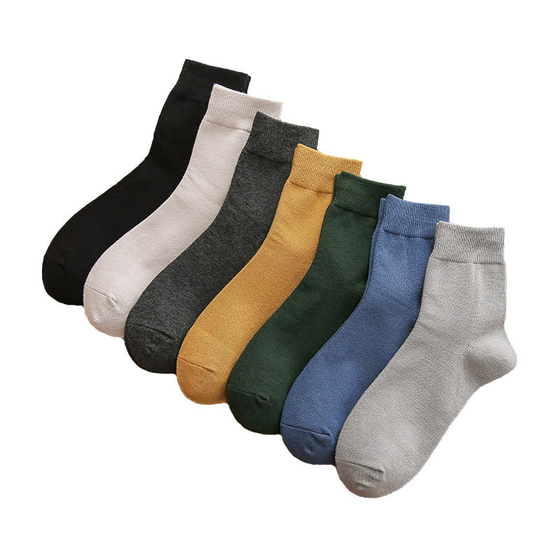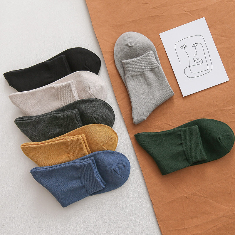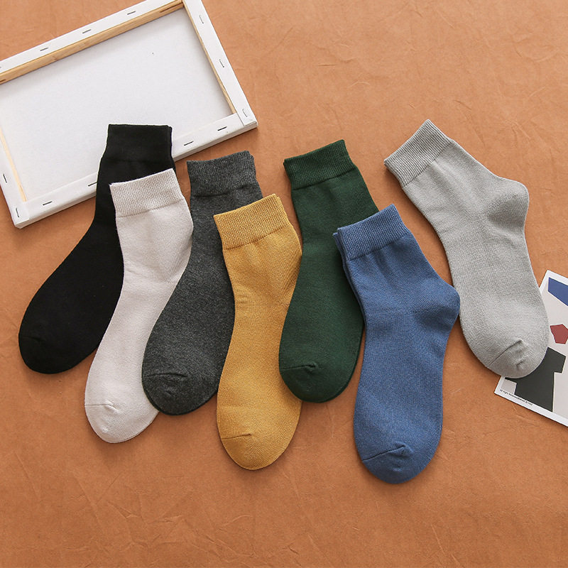 Khaki men's socks pure cotton solid color autumn and winter men's socks medium tube solid color business casual stockings 5 pairs dark green