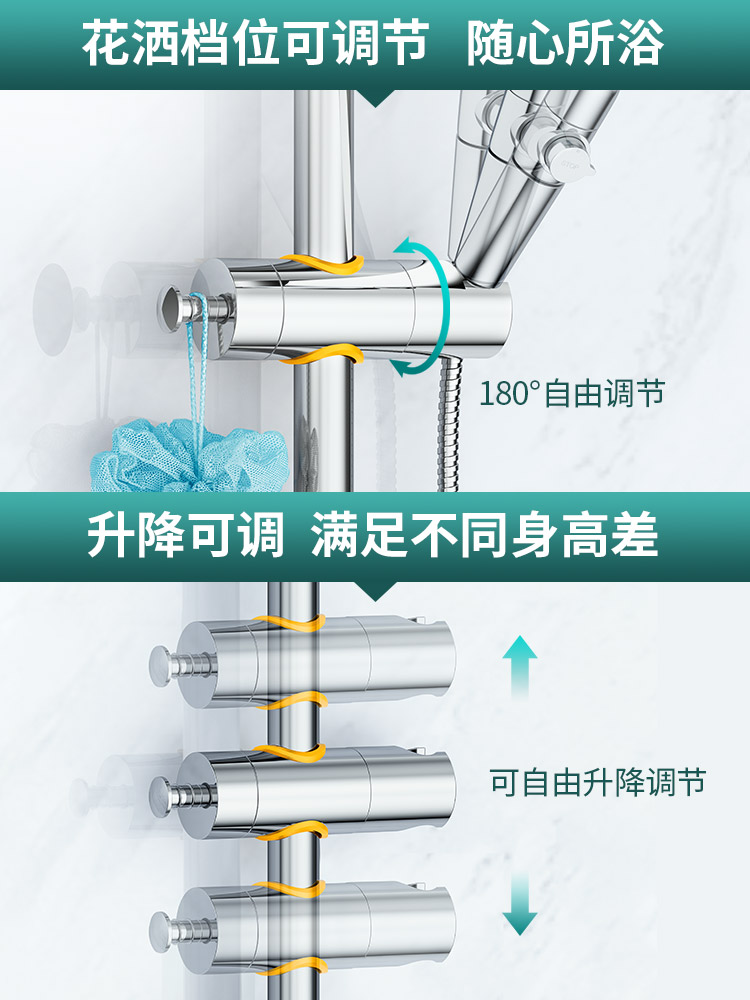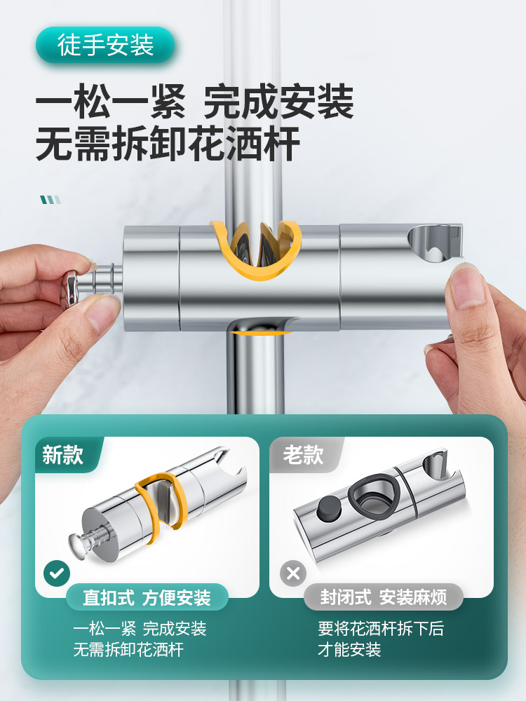 Punch-free shower stand lift bar universal shower fixed adjustable base nozzle slip sleeve shower rod accessory