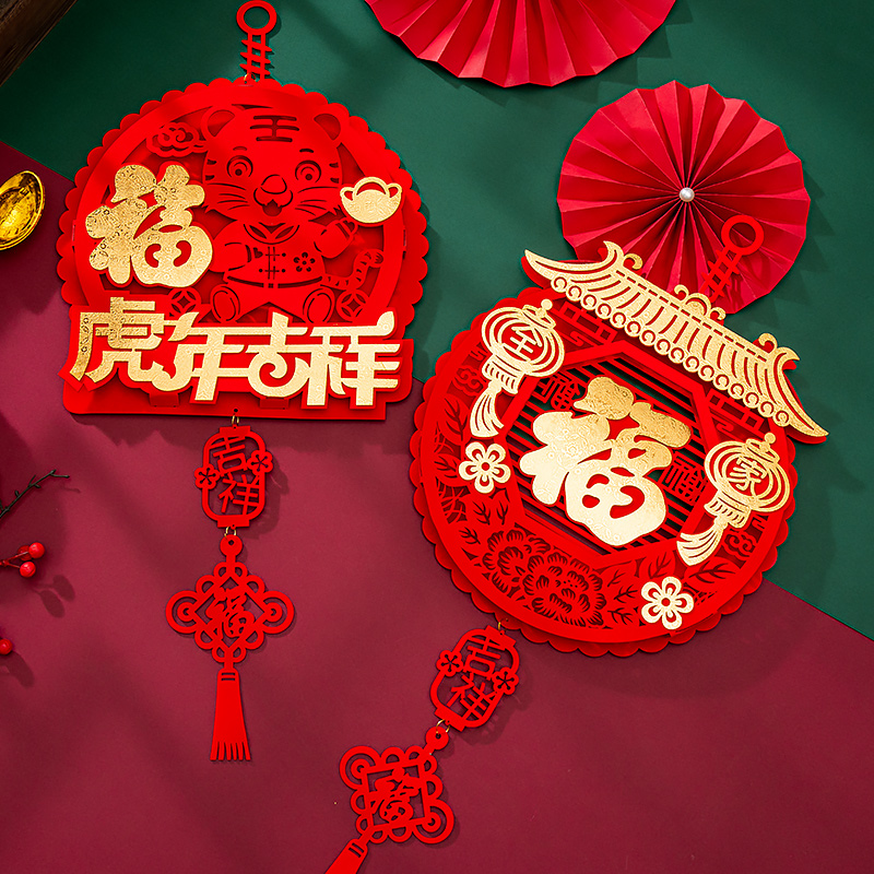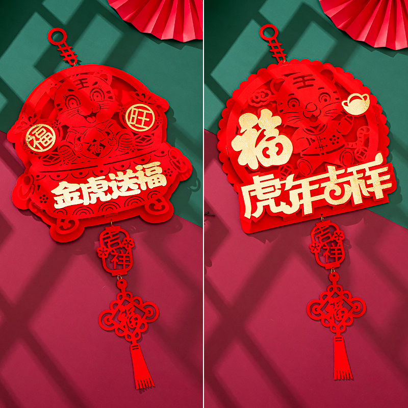 New Year decorations pendant 2022 Tiger years Spring Festival New Year Scene Placement Supplies Creative Living room Interior Fueword hanging decoration