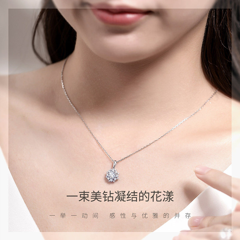 Joydrill 18K Platinum Diamond Necklace Women Real Diamond Gold Brick Stone Necklace Group Inlaid Diamond Pendant Lock Bone Chain
