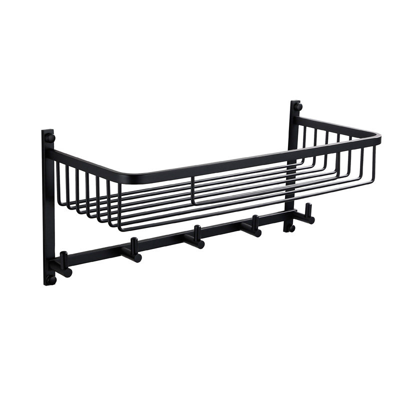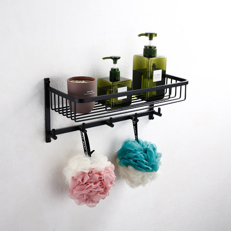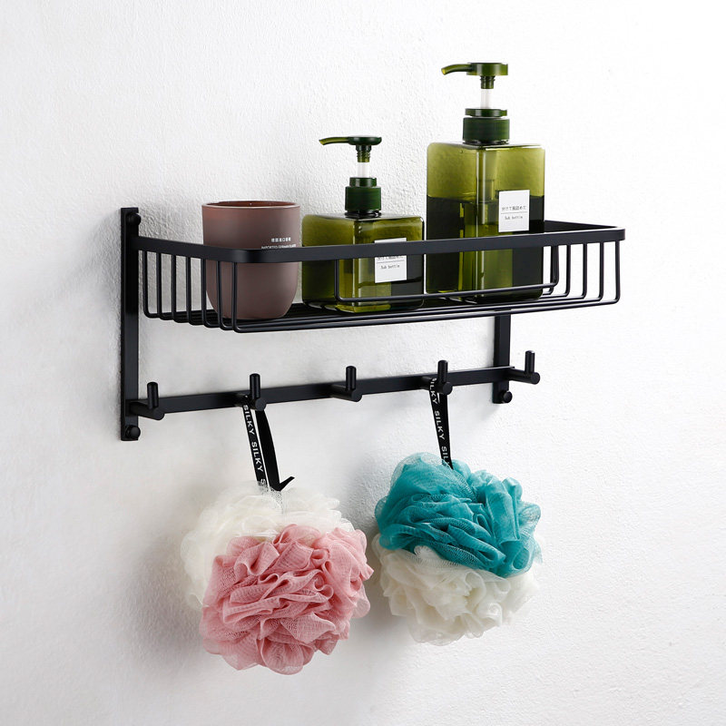 LFSTN Bathroom Black Double Layer Bathroom Corner Rack Pendant Suit Makeup room Makeup Hook Rectangular shelf